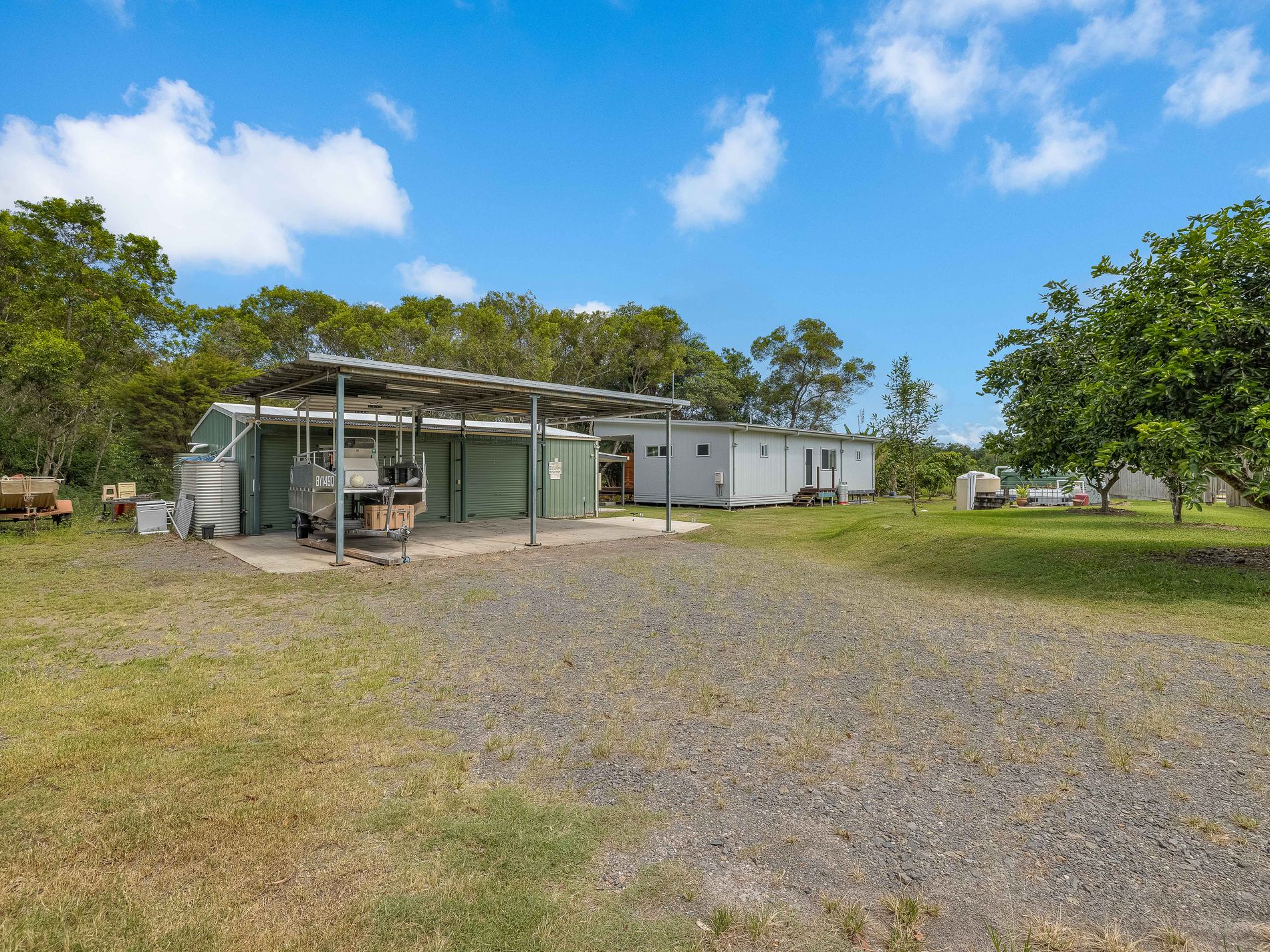 Approx. 168m² shed with high-clearance carport (combined), complete with 3-phase power, ideal for trades, storage or housing caravans, boats, trucks or machinery