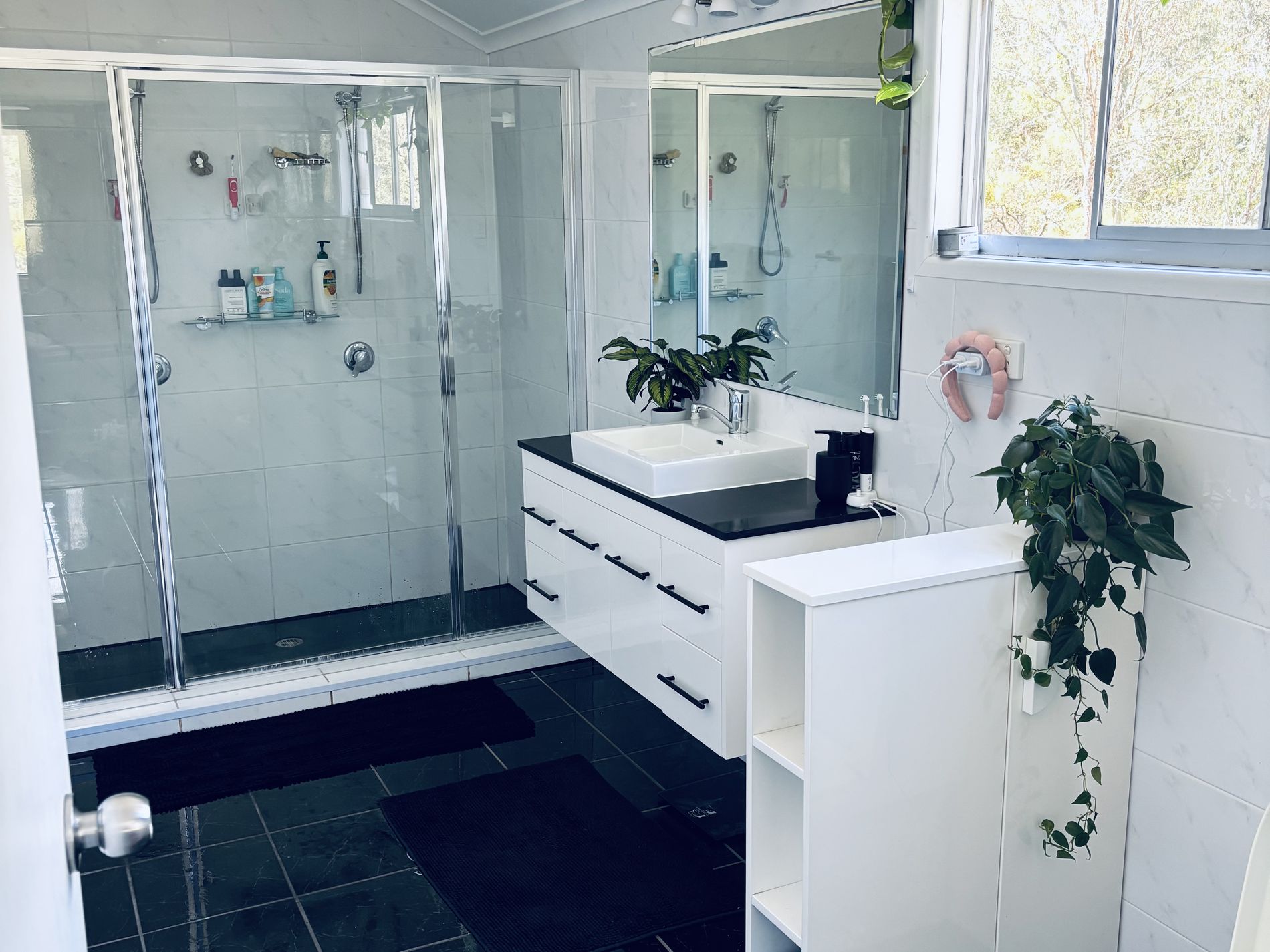 Spacious master bedroom with air-conditioning and a large ensuite featuring a double-head shower