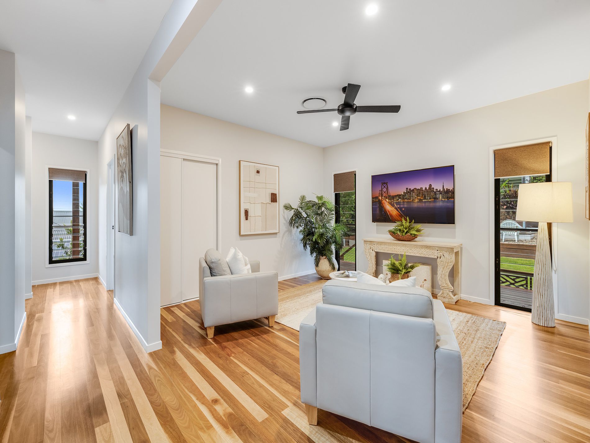 Entering through the solid timber front door and ascending the beautifully crafted spotted gum timber staircase, the sheer scale of the home is immediately apparent.